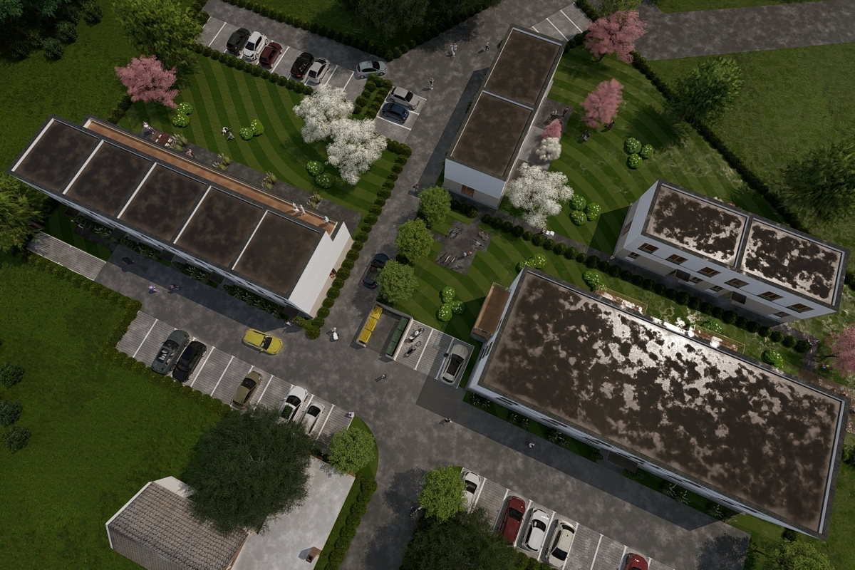 - Es sind insgesamt fünf Reihenhäuser mit jeweils einer Wohneinheit geplant. Diese zeichnen sich durch ihre moderne Architektur und effiziente Nutzung der Fläche aus.