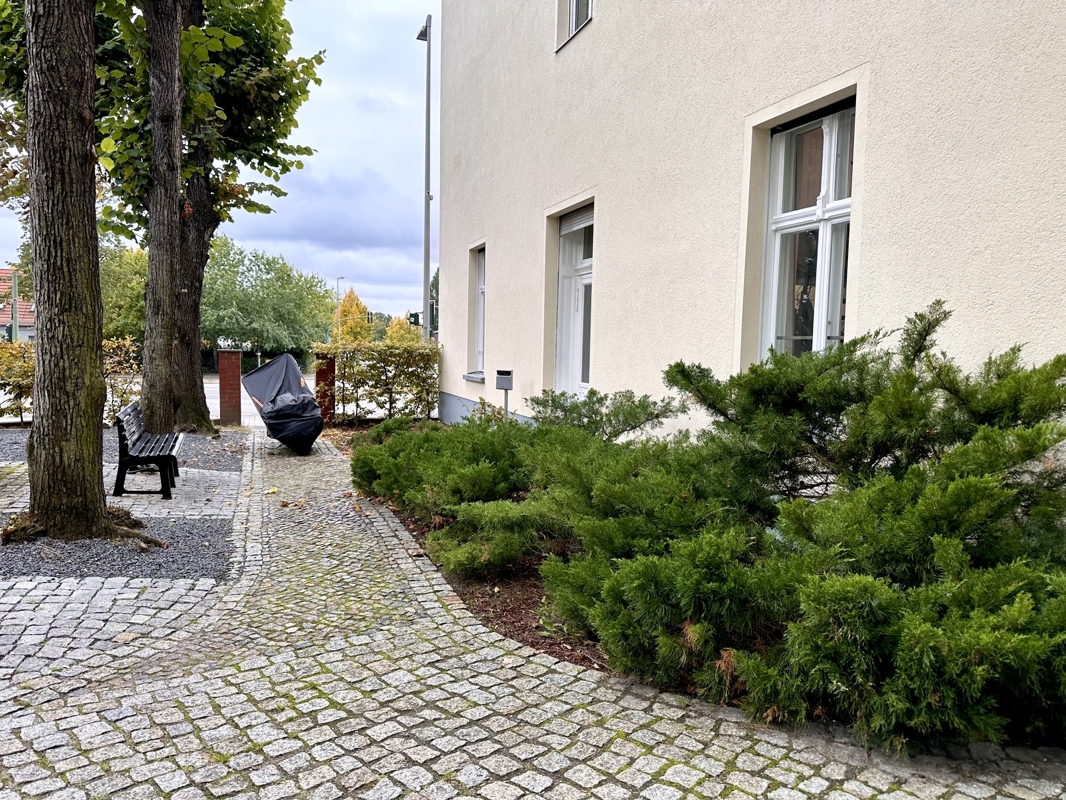 Für Erholung sorgen der angrenzende Oberfeldpark, der Biesdorfer See und der Schlosspark Biesdorf. Die ruhige Rückseite des Hauses bietet idyllische Grünblicke, während die Vorderseite zum historischen Ortskern mit entschleunigtem Verkehr zeigt.