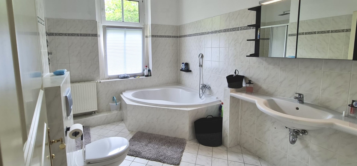 - Bodenbeläge: Holzlaminat, moderne Fliesen in Bädern und Nebenräumen