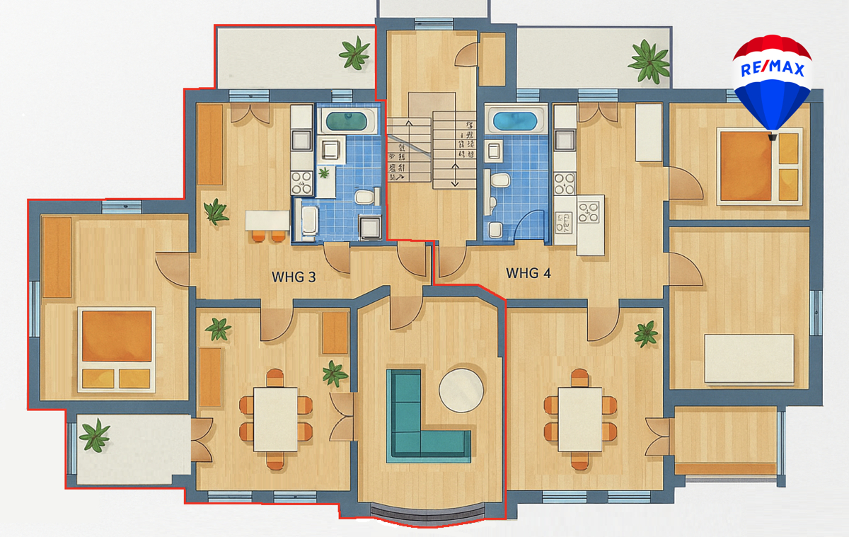 - Zusätzlicher Stauraum im Treppenhaus, exklusiv der Wohnungen zugewiesen