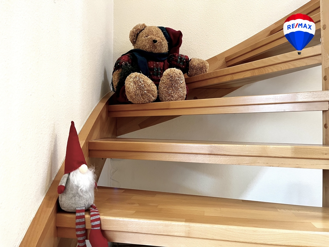 Die Buderus Gasheizung aus 2023 sorgt für geringe Energiekosten und die Energieklasse B. Hochwertige Holzfenster mit Jalousien und eine Bucheholztreppe runden das Angebot ab.